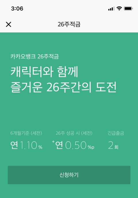 뭔가 예전에 했던 카카오뱅크 26주적금 기억이 새록새록 나면서 한번 다.